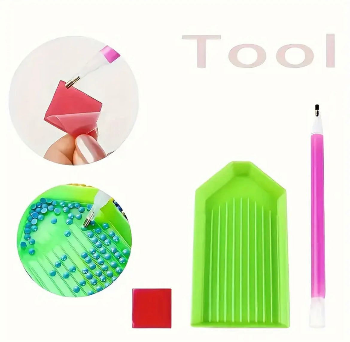 Kit comes with diamond bead tray, applicator pen and square adhesive.