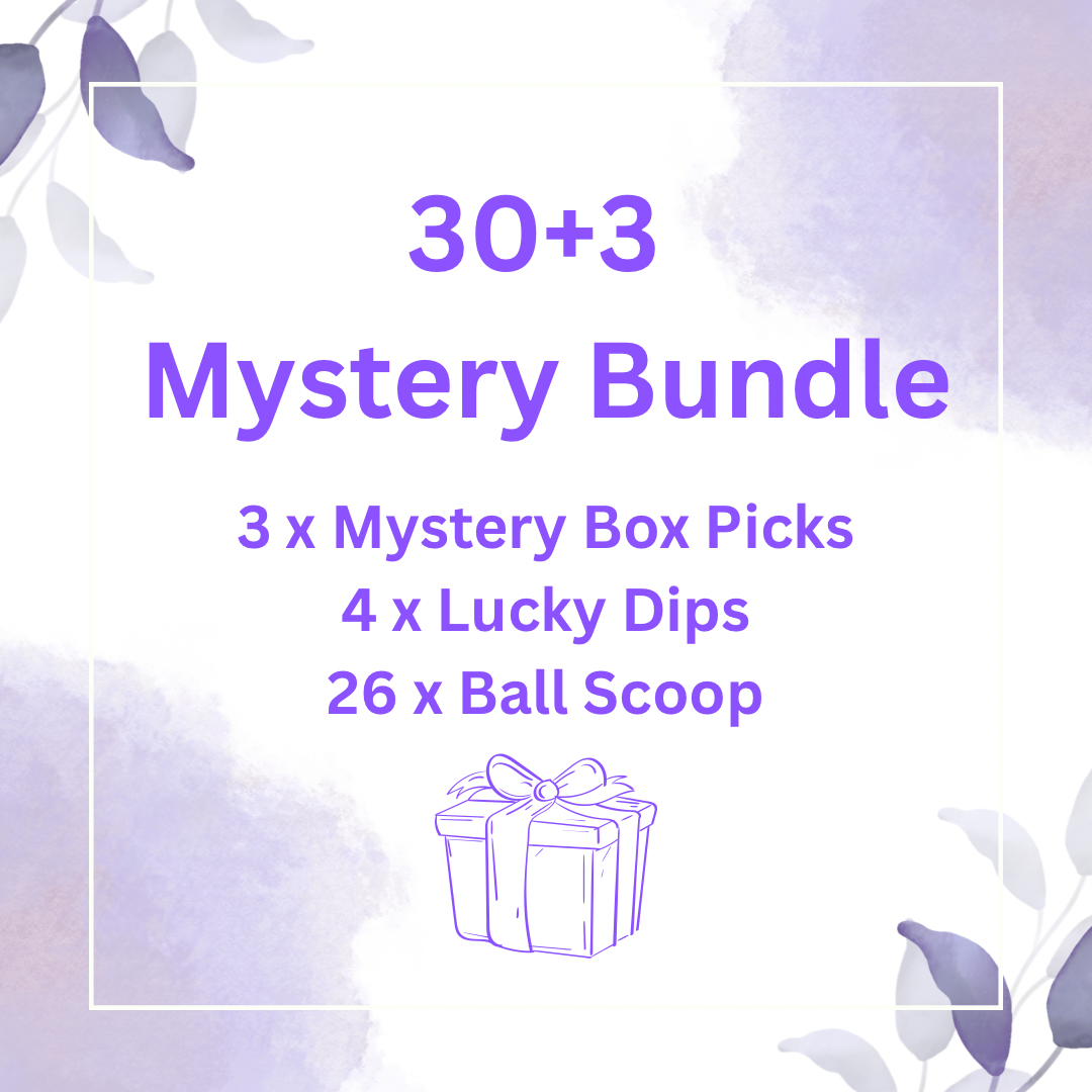 You are purchasing a 30 ball mystery scoop (which includes 4 lucky dips in the 30 ball scoop) plus 3 Mystery Box Picks from our premium range.