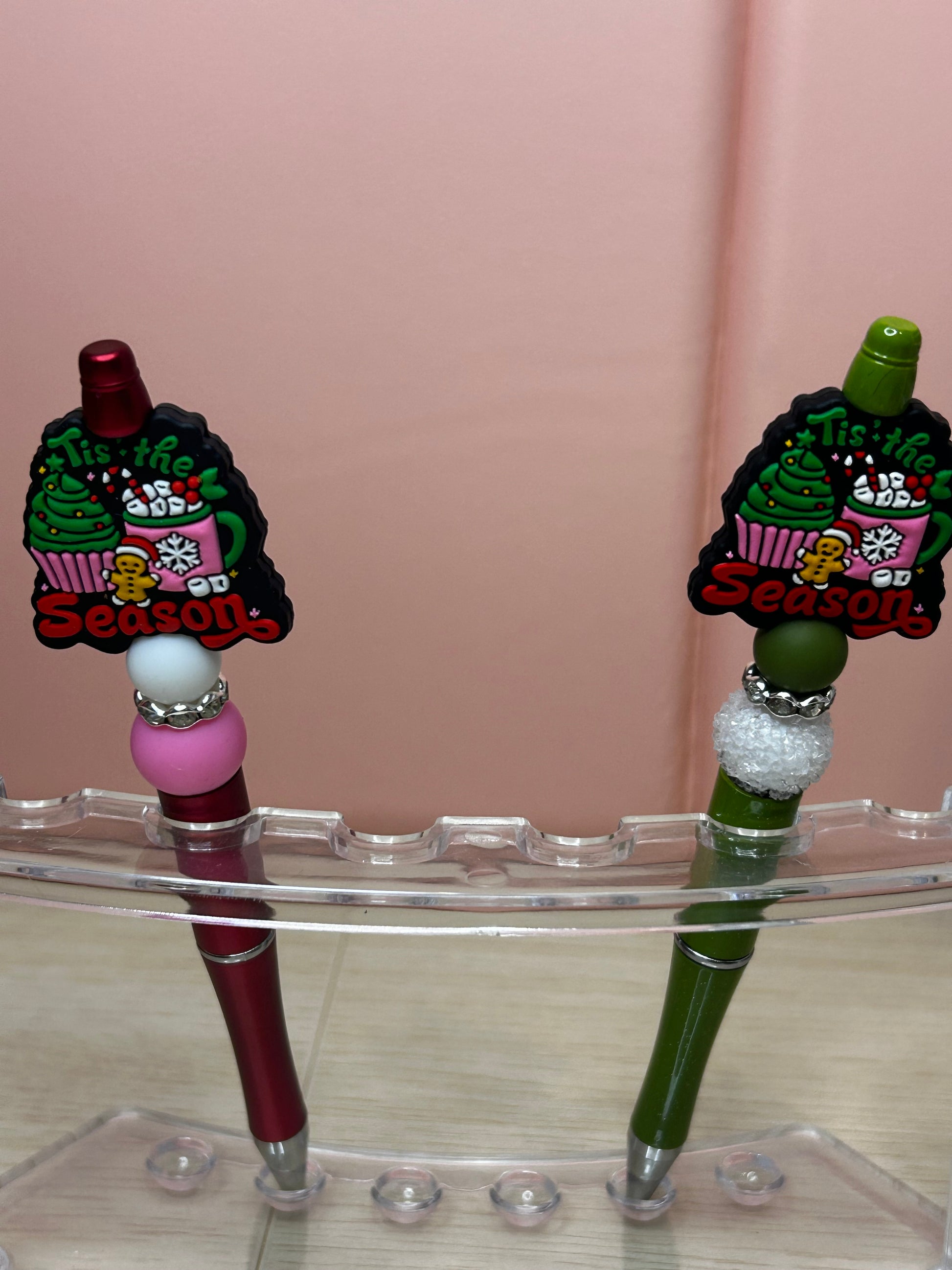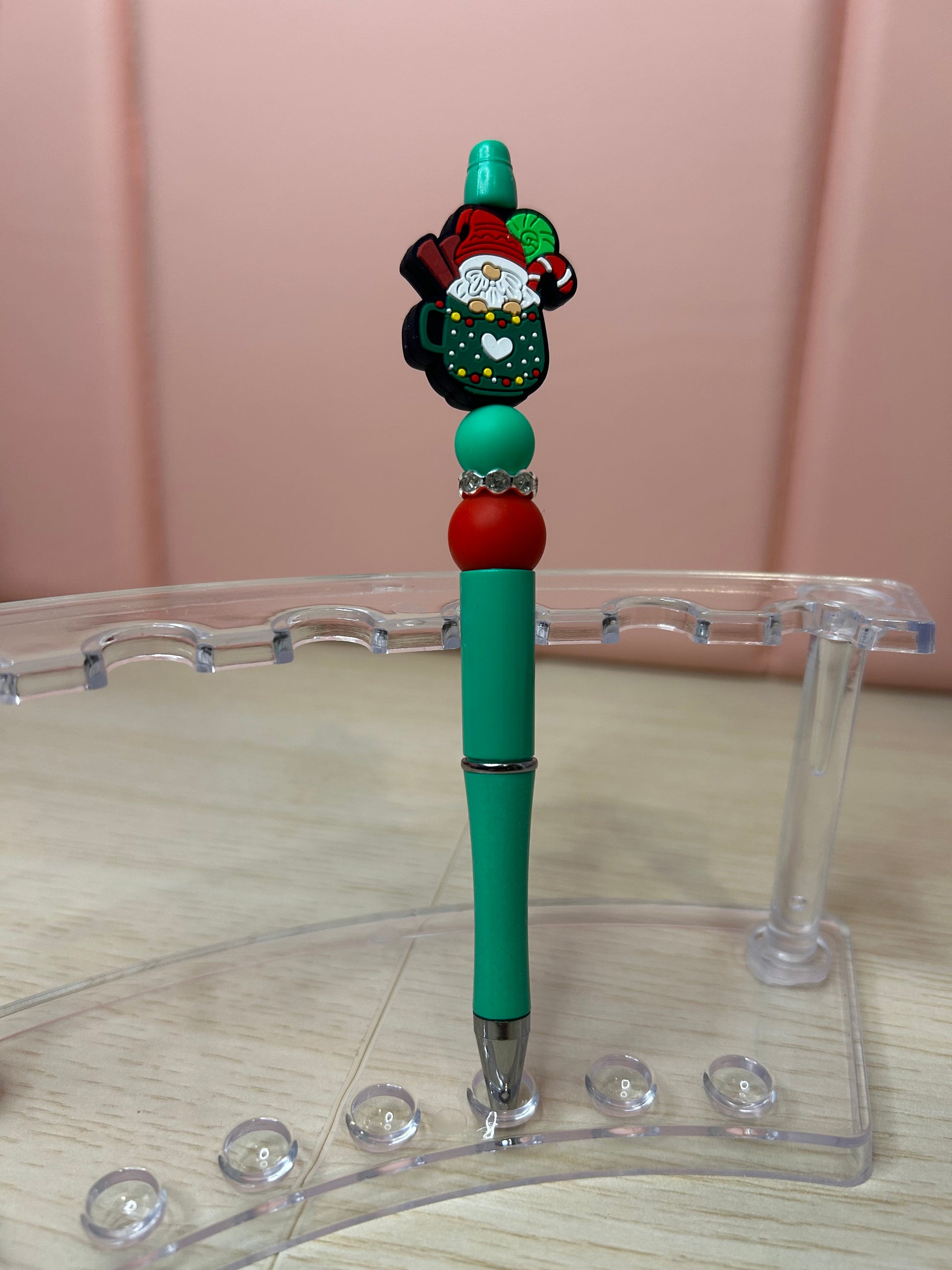 Christmas themed handmade beaded pens. Made using silicone beads and focals. Black ink.