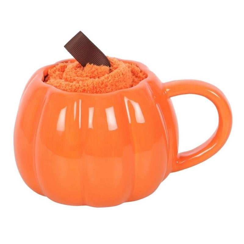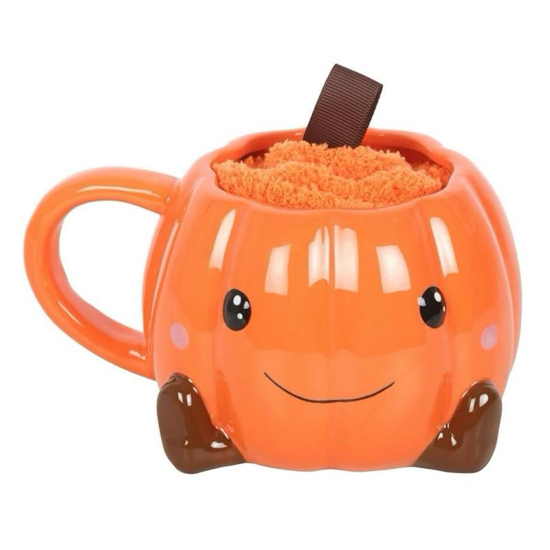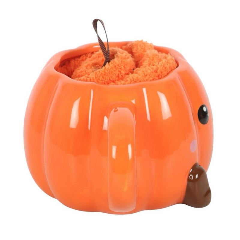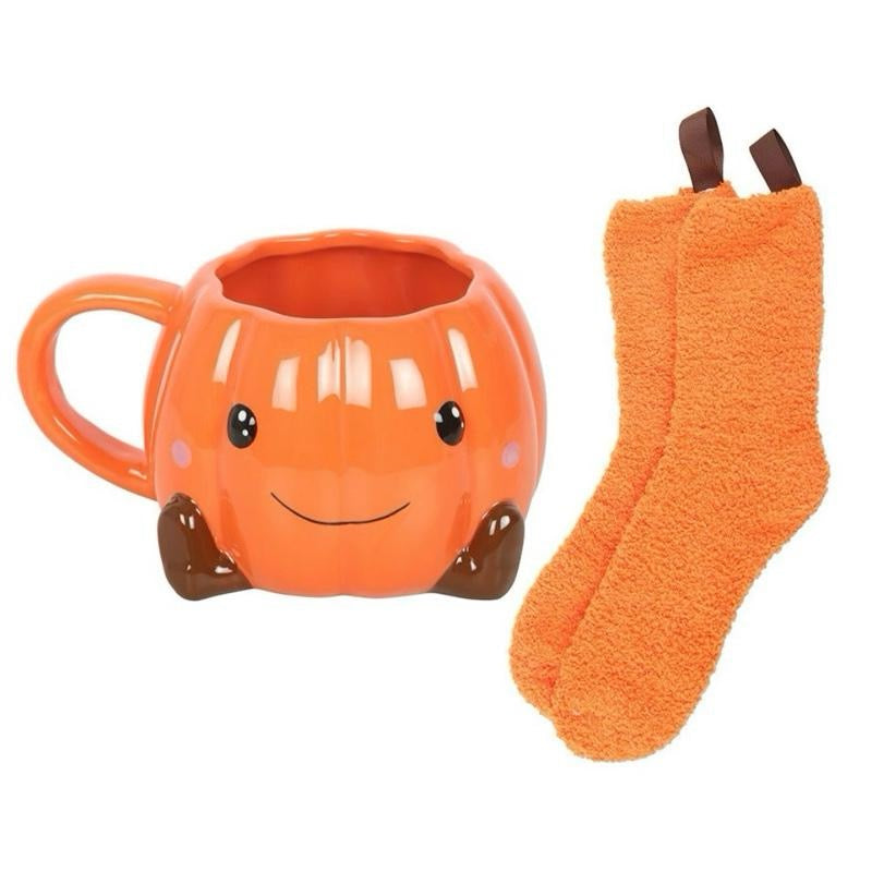 Snuggle up with this cute cosy pumpkin-shaped mug and matching fluffy orange socks. With an adorable smiling pumpkin design, the mug is perfect for hot chocolates or autumn drinks. A thoughtful gift for anyone who loves the cosy side of spooky season. Mug: 500ml capacity. Do not microwave. Hand wash only. Socks: do not tumble dry.