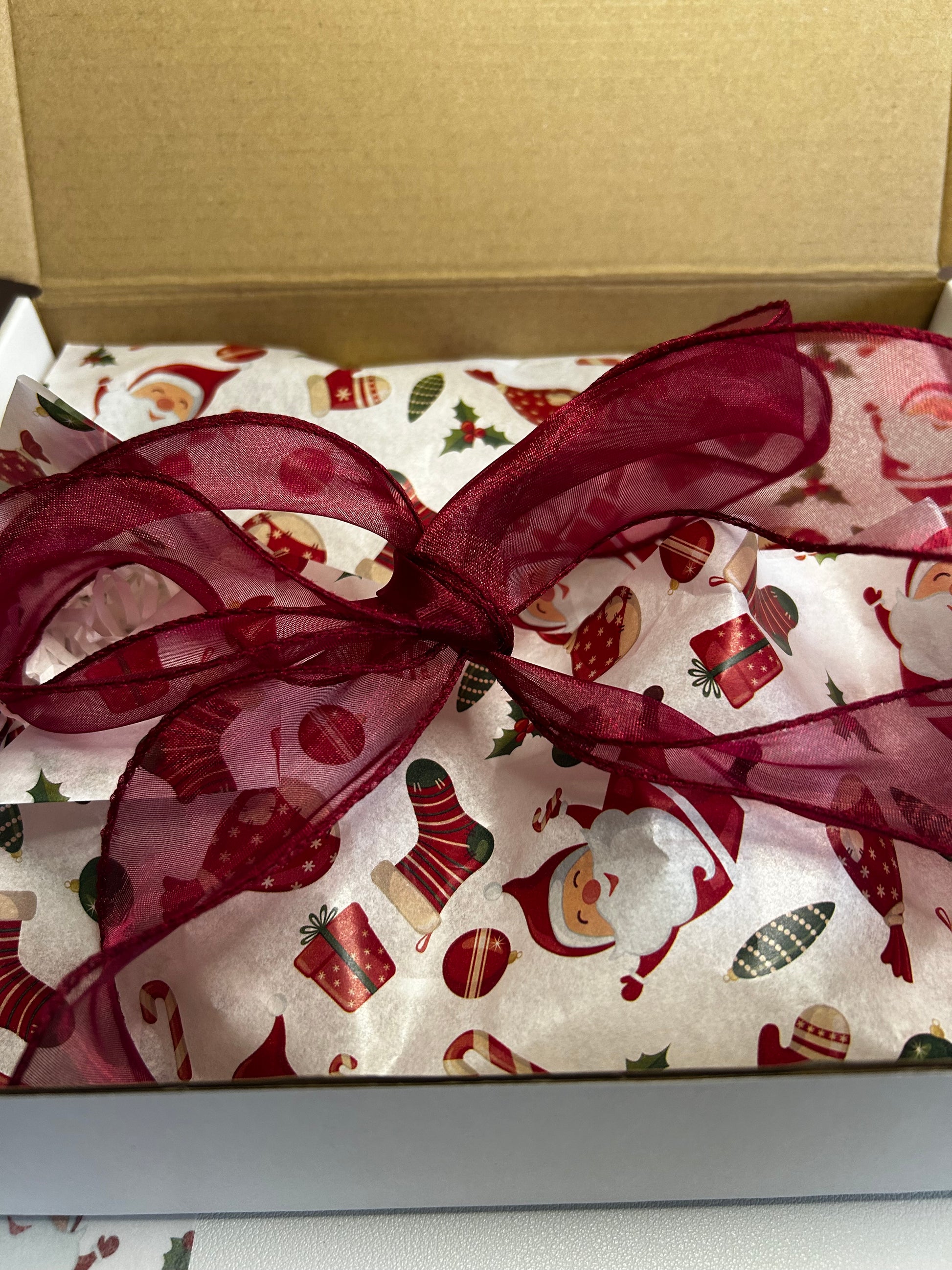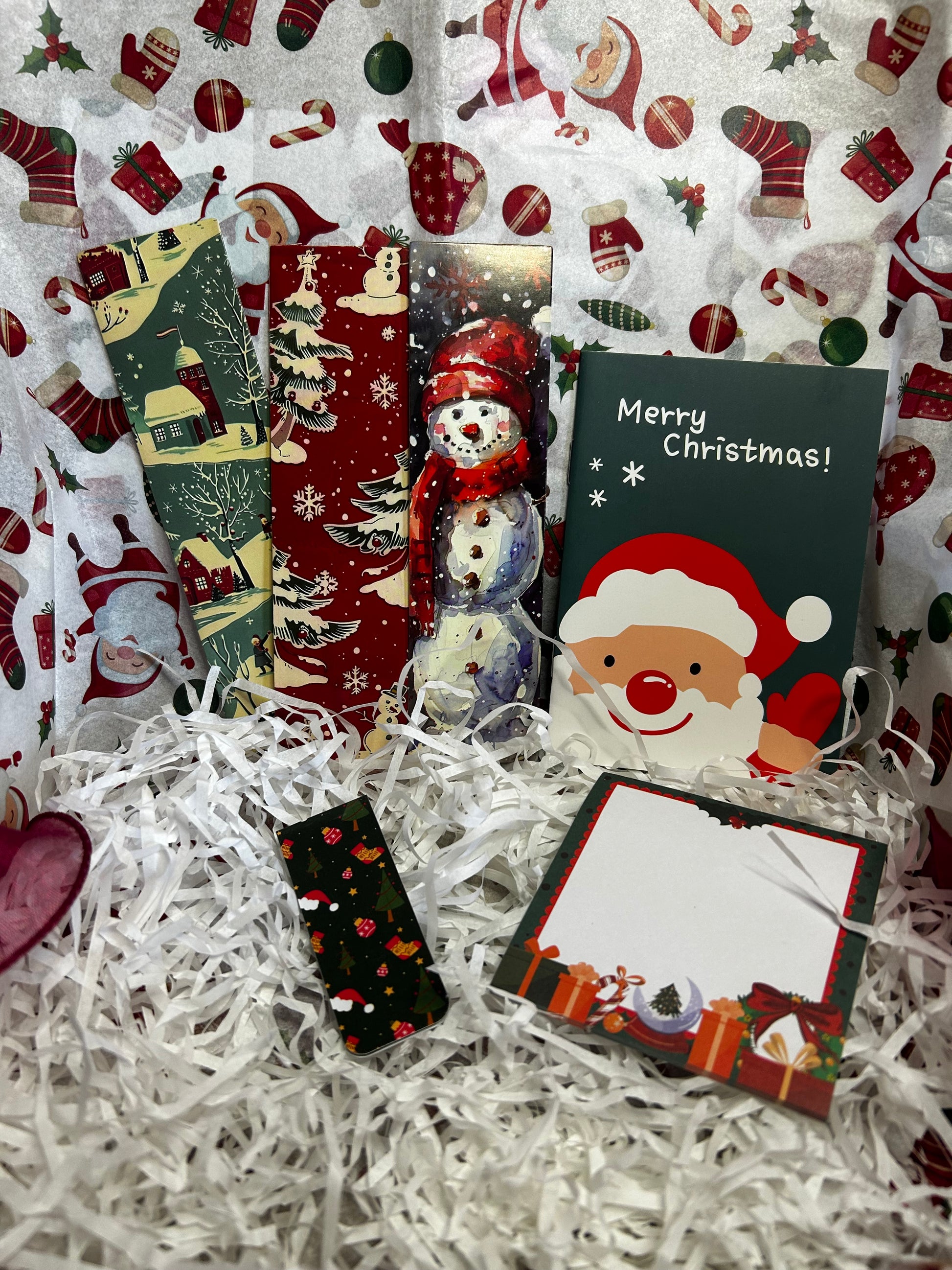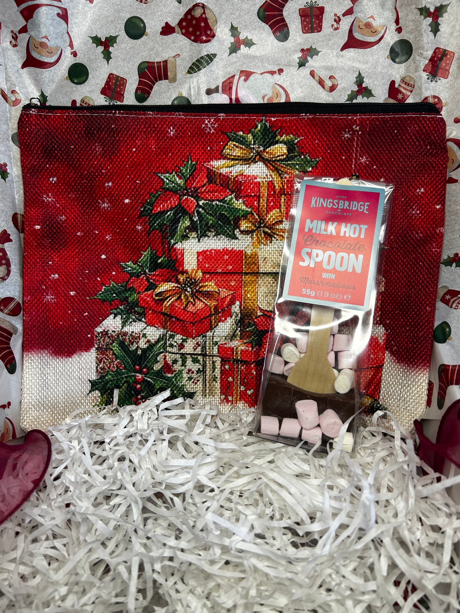 Also included is a large Christmas tree pouch that can be used to store stationery or make up. A deluxe red Christmas stylus pen, another 2 pens, sticky notes, magnetic bookmark (design may vary), mini notebook, coaster (design varies), 3 card bookmarks (design varies), stickers and a hot chocolate spoon to get you in the festive spirit. All packaged together in Christmas tissue paper and ribbon. Please note that the colour and design of the mini notebook can vary (green or yellow) and these are selected at random when packing your order.