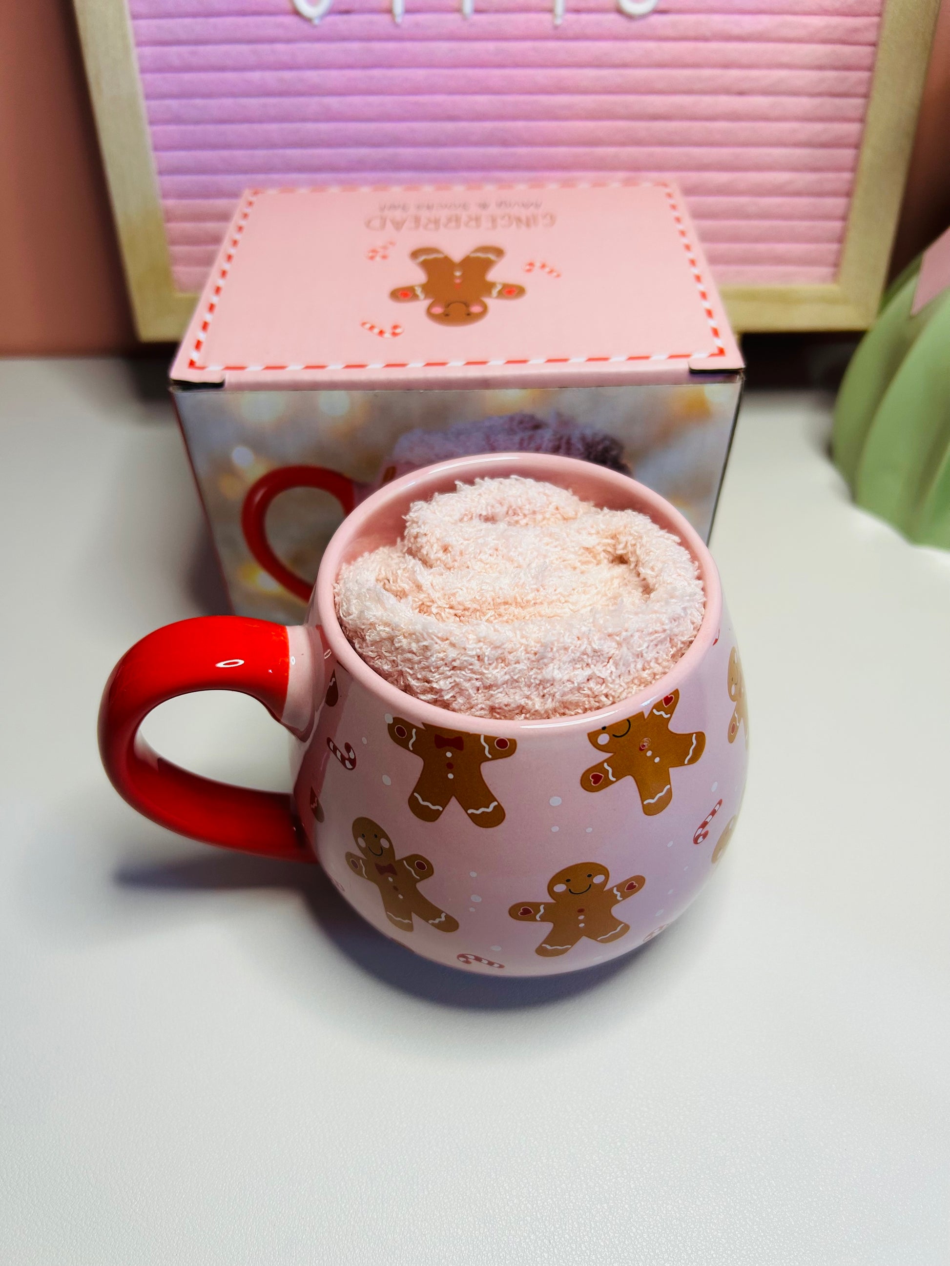 Pink Gingerbread Rounded Mug & Fluffy Socks Gift Set