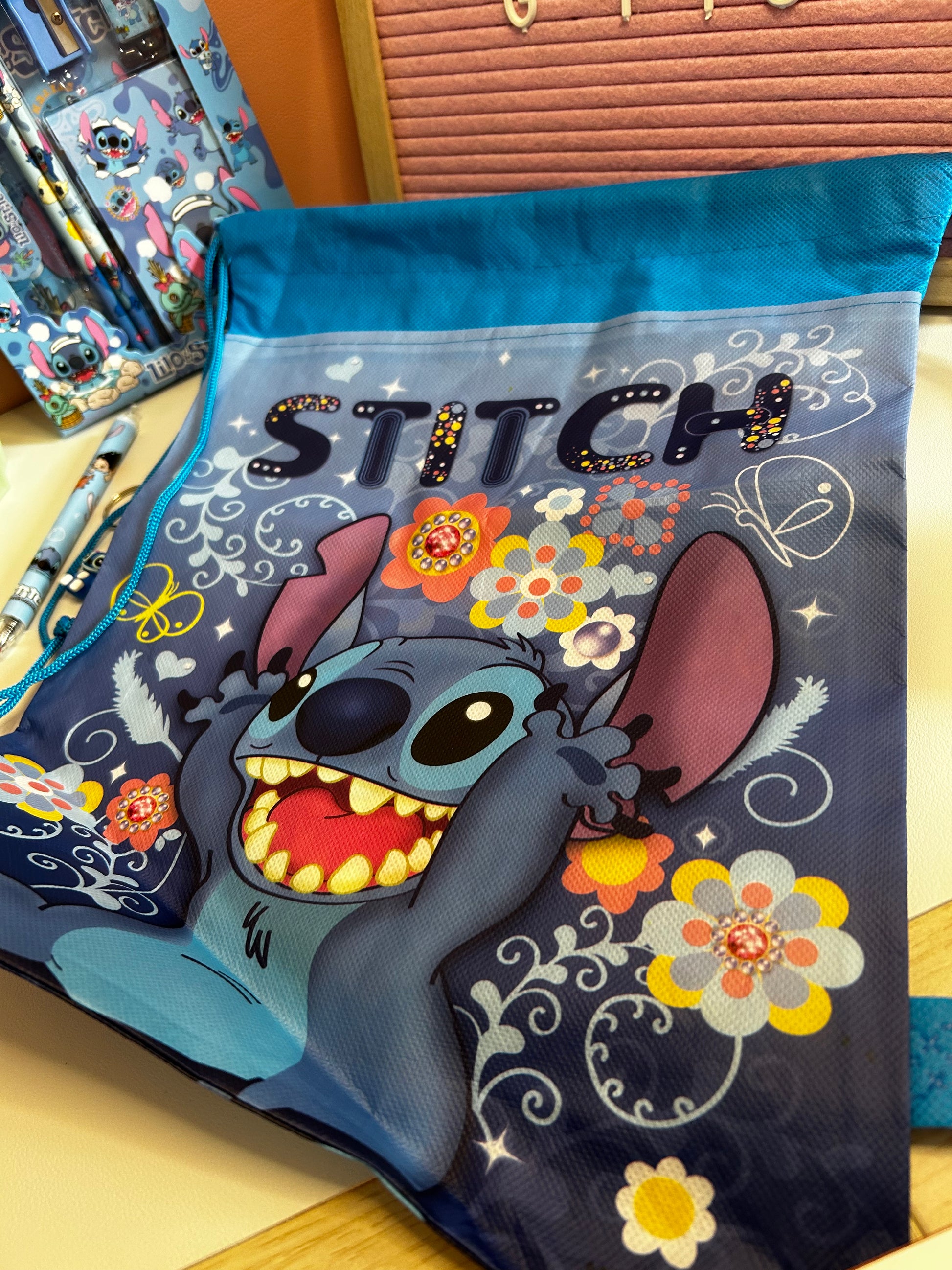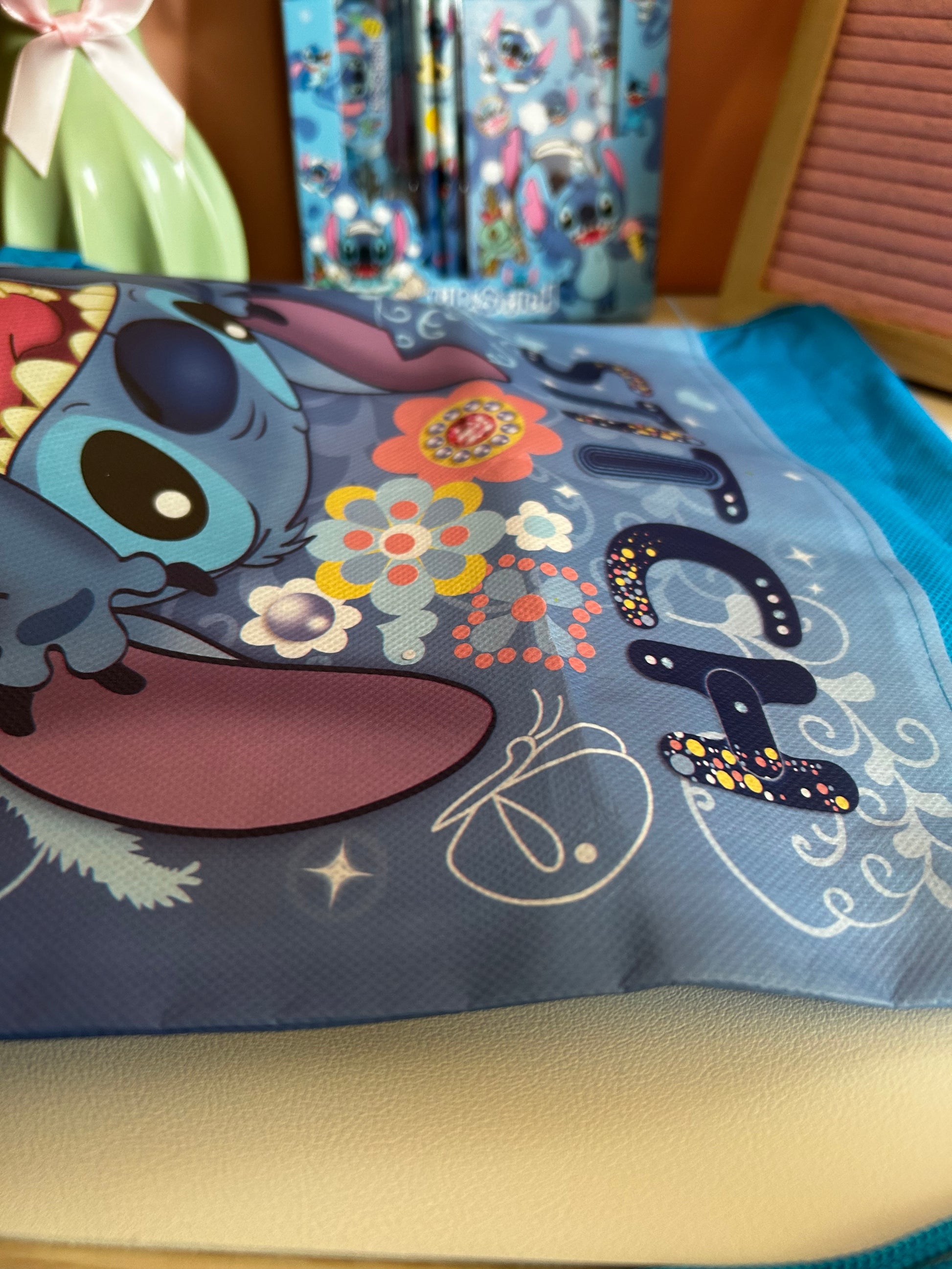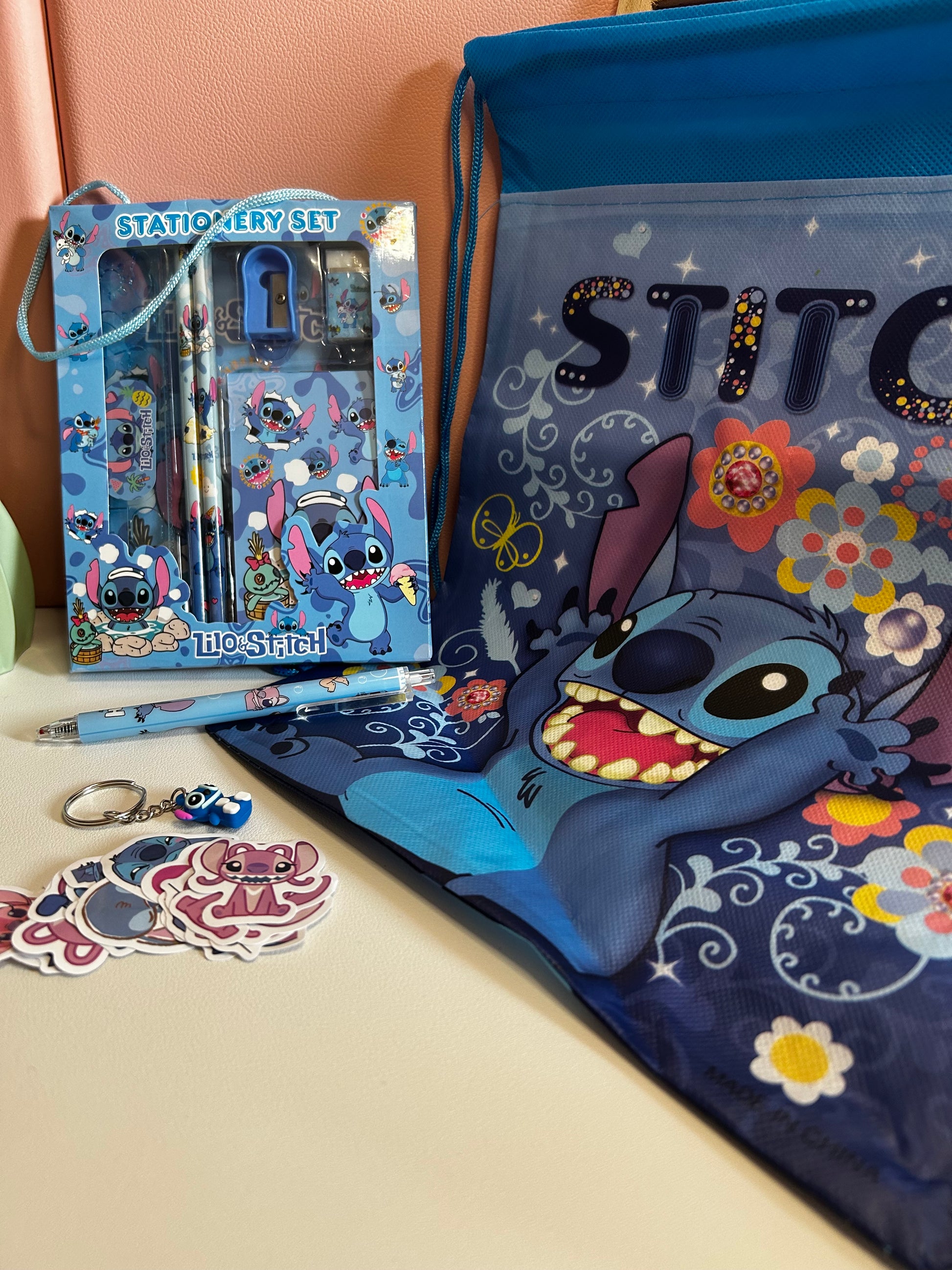 Includes boxed stationery set, non-woven drawstring bag, pen, keyring & stickers.