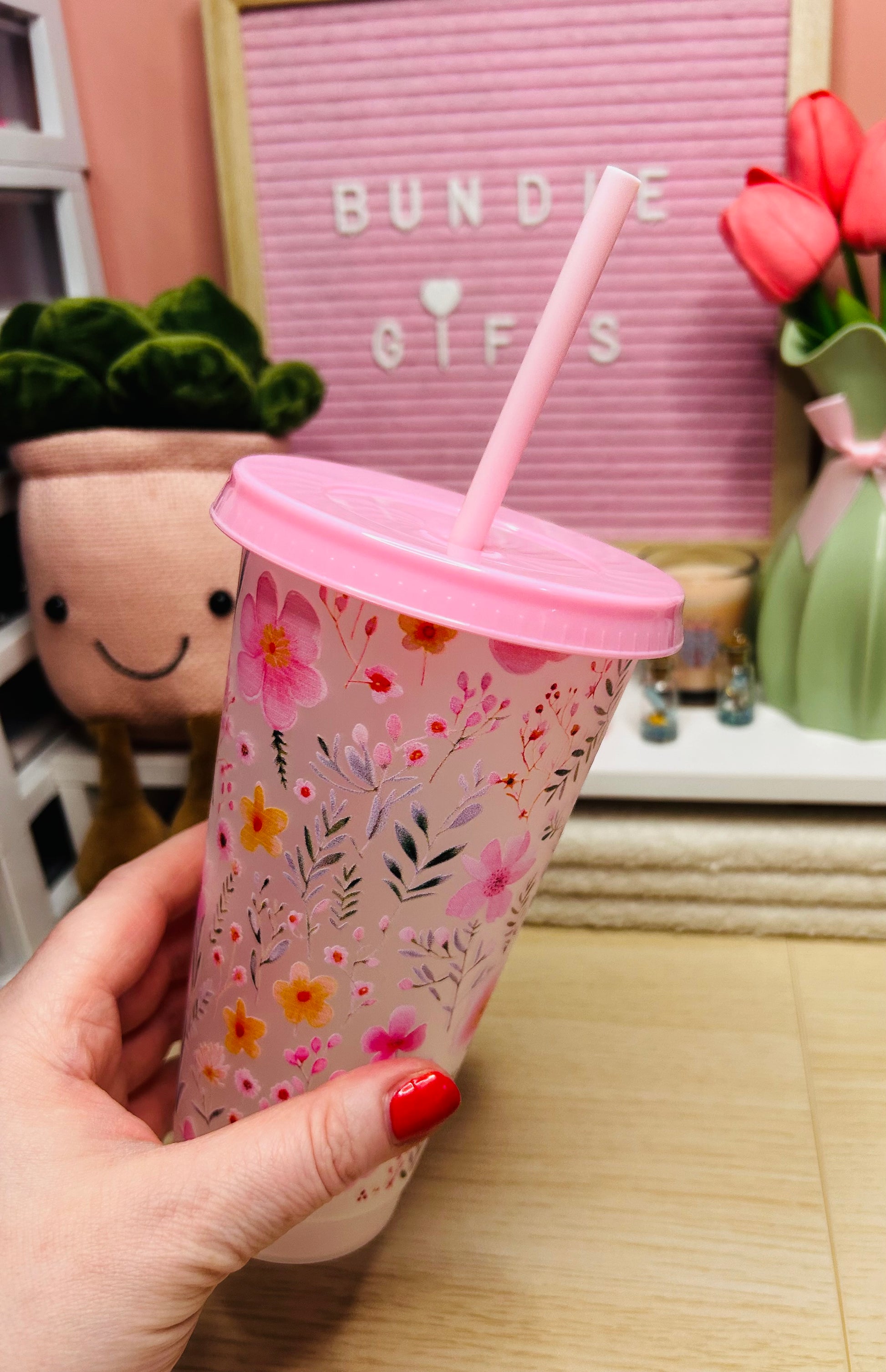 24oz Spring Vibes Pink Floral Cold Cup