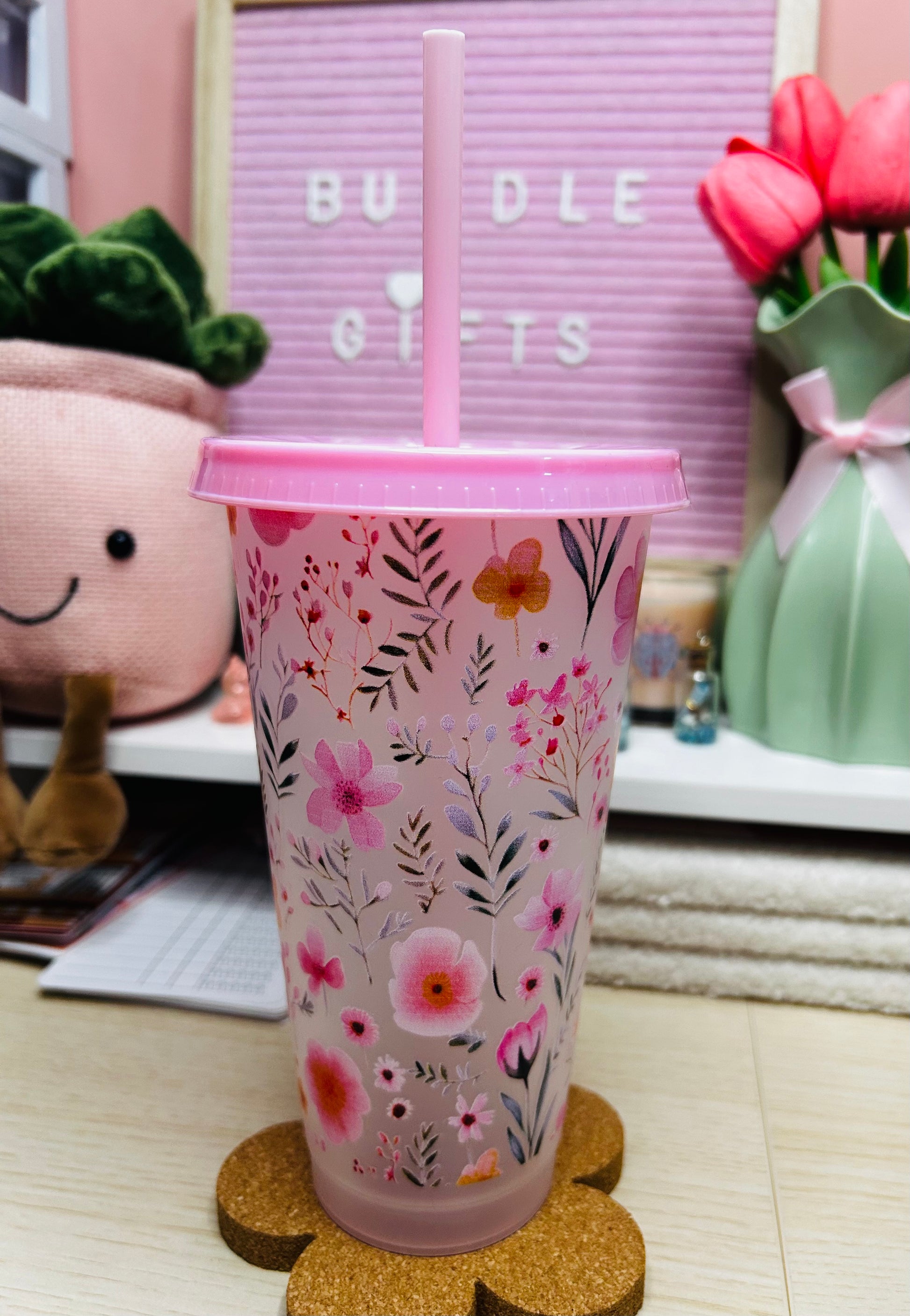 This 24oz Pink Floral Cold Cup with Matching Straw & Lid is a stylish and fun drinkware option for the upcoming warmer weather. Made from plastic, this tumbler features a colourful pink and floral design, adding a touch of spring cheer to your cold drinks. The set includes a cup lid, cold cup, and straw, making it a convenient and practical choice for on-the-go use. With a capacity of 24oz and dimensions of 18cm in height and 10cm in width, this tumbler is perfect for enjoying your favourite beverages in style.