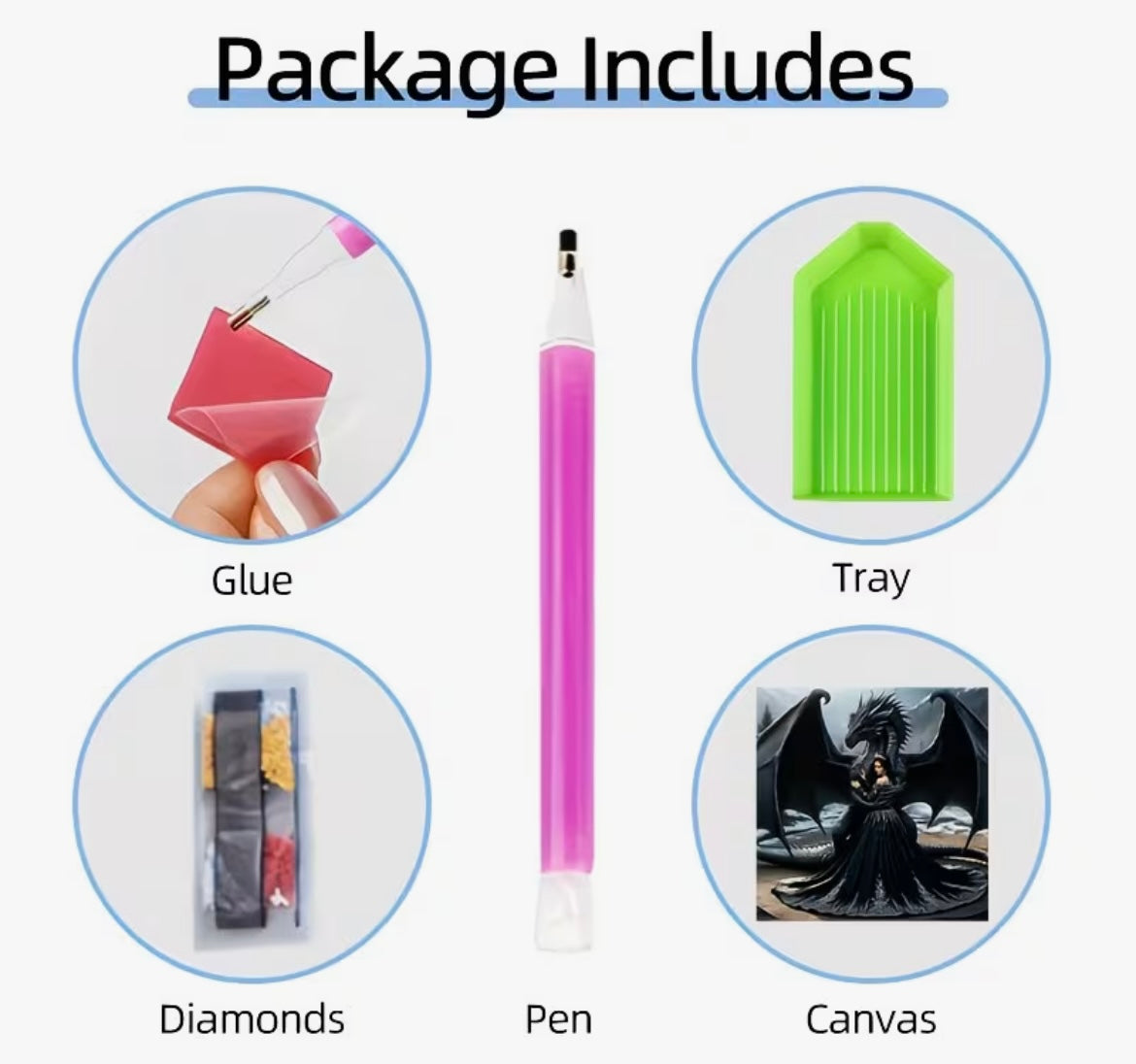 The Gothic Black Dragon Diamond Art Painting Kit includes all the necessary materials to create a this stunning painting in the style of diamond art. This kit is perfect for those looking to try their hand at a new craft type & provides everything needed to get started on your creative project. Kit includes a rolled canvas, diamond beads, bead tray, sticky square & diamond art applicator pen. Please note that this item does not include a frame.