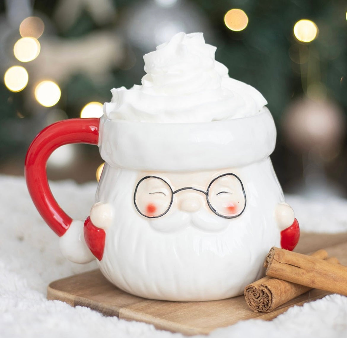 Add a jolly touch to your festive drinks with this Santa Claus-shaped ceramic mug, perfect for sipping hot chocolate, tea, or coffee on chilly winter days. With its cheerful Santa design, this mug brings Christmas spirit to every sip, making it a must-have for the festive season. A delightful addition to any seasonal mug collection. 500ml capacity. Not suitable for microwave use. Handwash only